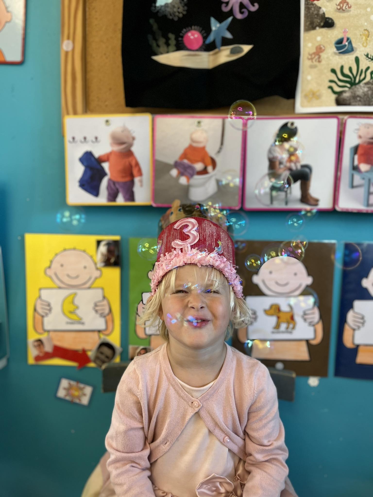 In de zomervakantie wordt Eliana 3 jaar! Dit werd gevierd in de klas met lekkere pannenkoeken, suiker, aardbeien en chocomelk! Mmmmm...